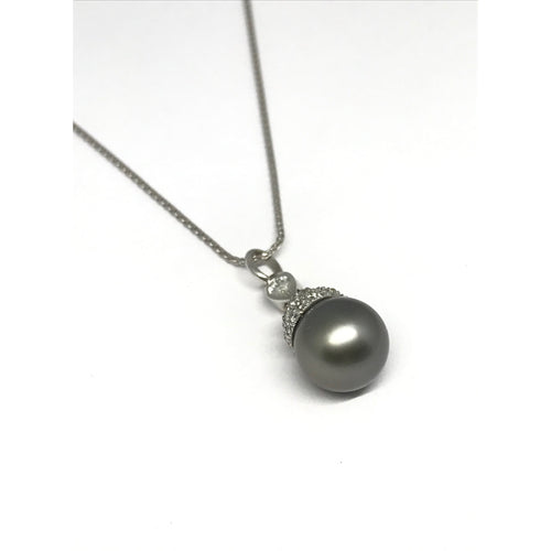 18K WG BLACKK SOUTH SEA PEARL & DIA PENDANT