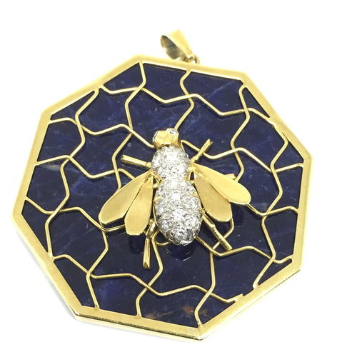 18K YELLOW GOLD SODALITE AND DIAMOND PENDANT