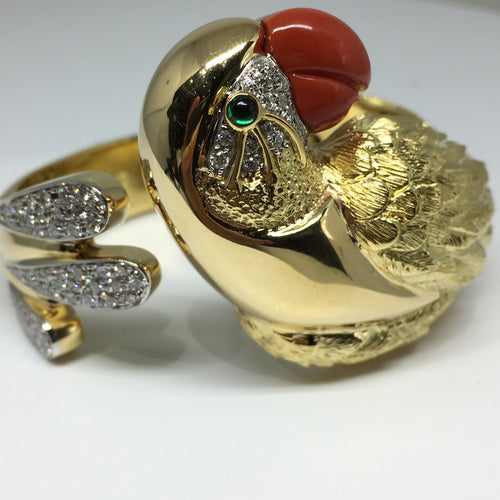 18K YELLOW GOLD OVAL CORAL RING WITH DIAMONDS