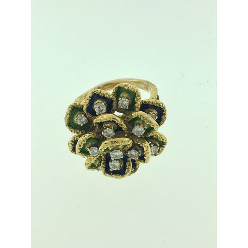 18K YELLOW GOLD RETRO ENAMEL AND DIAMOND RING