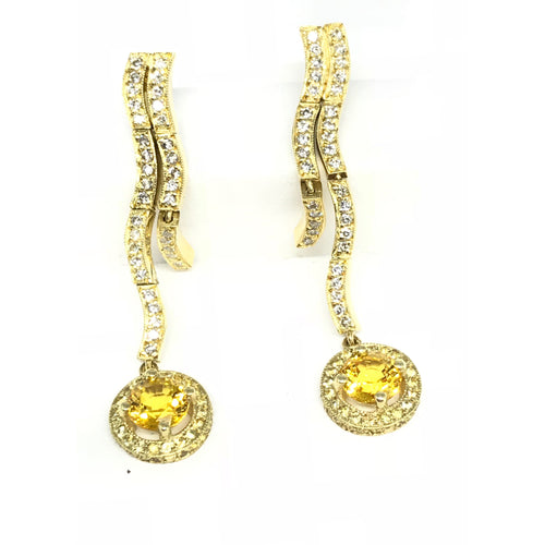 18K YG 3.11 CT TW YELLOW SAPPHIRE AND WHITE DIAMOND .50CT EARRINGS