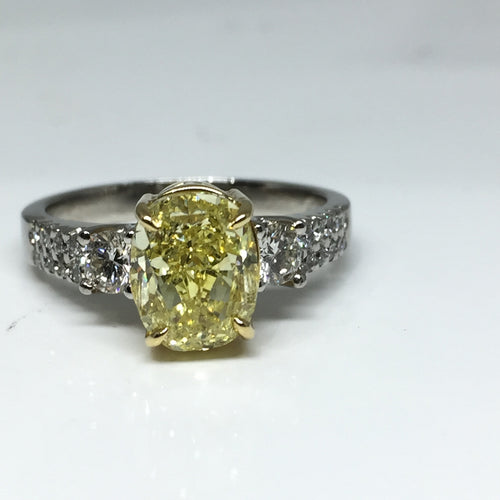2.24 ct FANCY INTENSE YELLOW CUSHION MODIFIED DIAMOND RING