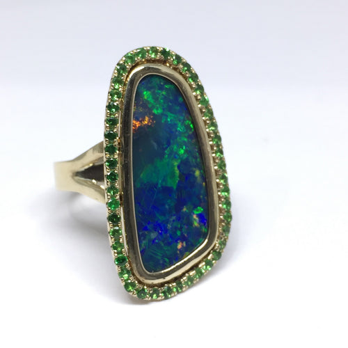 14K DOUBLET OPAL AND TSAVORITE RING