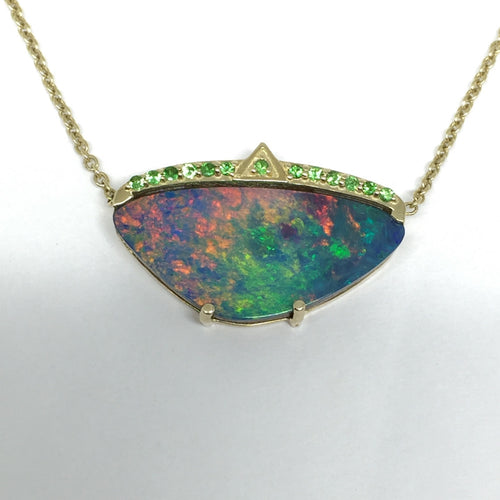 14K DOUBLET OPAL AND TSAVORITE PENDANT