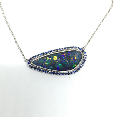 14K DOUBLET OPAL AND SAPPHIRE PENDANT