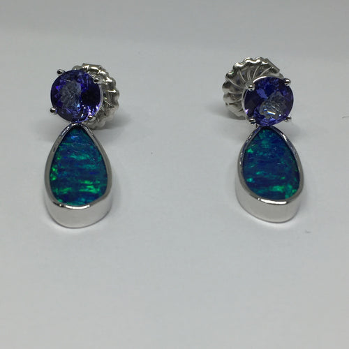14K DOUBLE OPAL AND TANZANITE EARRINGS