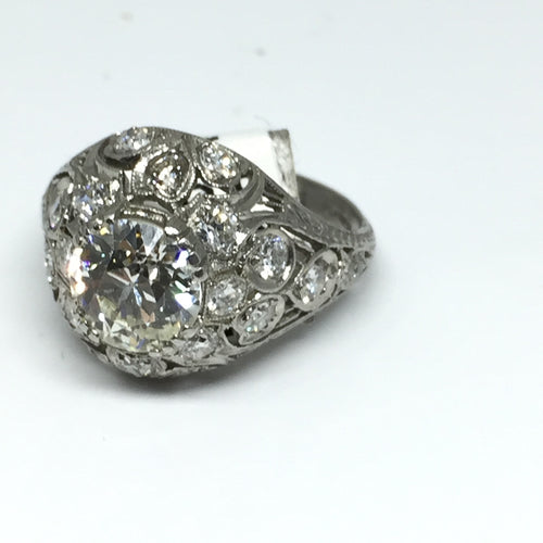 ART DECO PLATINUM DIAMOND 1.85 CT CENTER STONE DOME RING