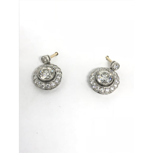 DECO STYLE CLUSTER ROUND DIAMOND DROP EARRINGS