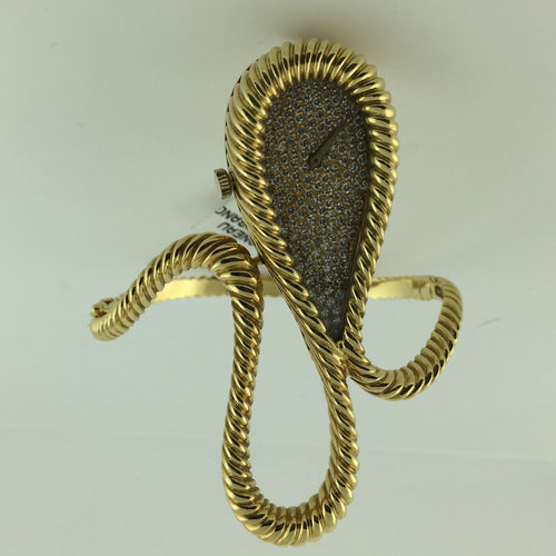 DELANEAU GOLD AND DIAMOND SWIRL BANGLE WATCH