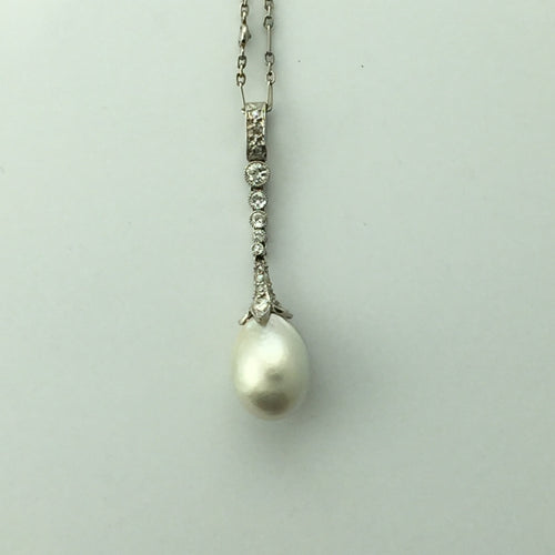 FRENCH DIAMOND NATURAL PEARL NECKLACE