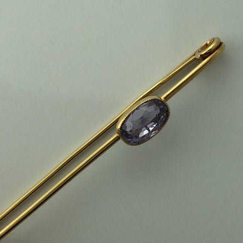 FRENCH SAFETY PIN BROOCH WITH SAPPHIRE 18K YELLOW GOLD