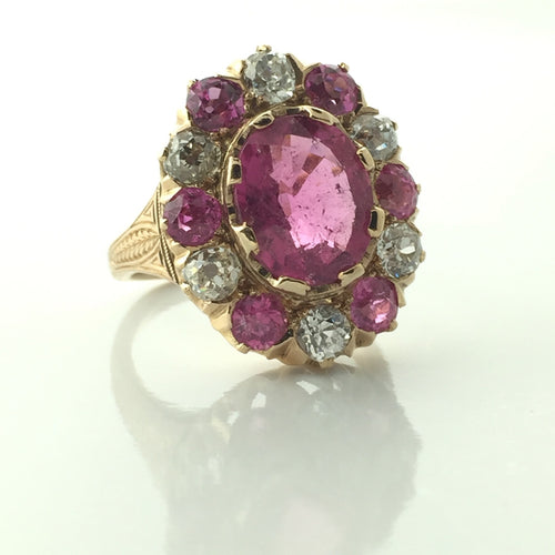FRENCH RING TOURMALINE SAPPHIRE DIAMOND 18K YELLOW GOLD