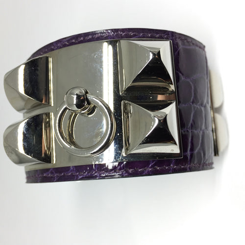 HERMES LEATHER RHODIUM PLATED CUFF