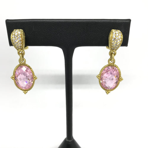 JUDITH RIPKA 18K YELLOW GOLD PINK QUARTZ & DIAMOND EARRINGS