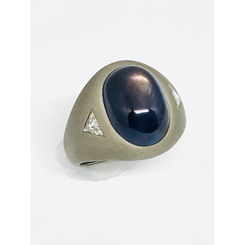 LARGE FRENCH ART DECO SAPPHIRE DIAMOND PLATINUM RING