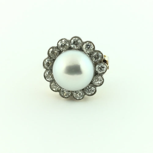 PLATINUM AND 18K GOLD SOUTH SEA PEARL AND DIAMOND RING