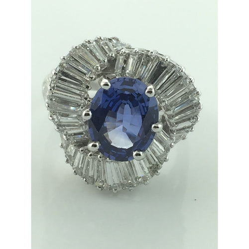 PLATINUM DIAMOND BAGUETTE RING 18K HEAD OVAL SAPPHIRE