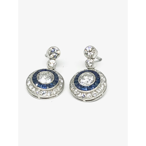 PLATINUM SAPPHIRE DIAMOND DECO EARRINGS