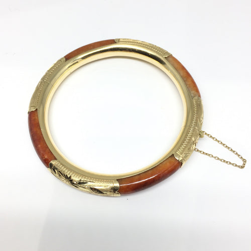 14K YELLOW GOLD AND BROWN JADE BANGLE