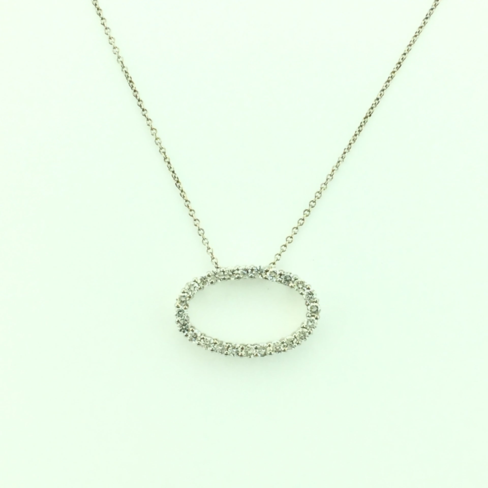 14K WHITE GOLD PAVE OVAL DIAMOND PENDANT