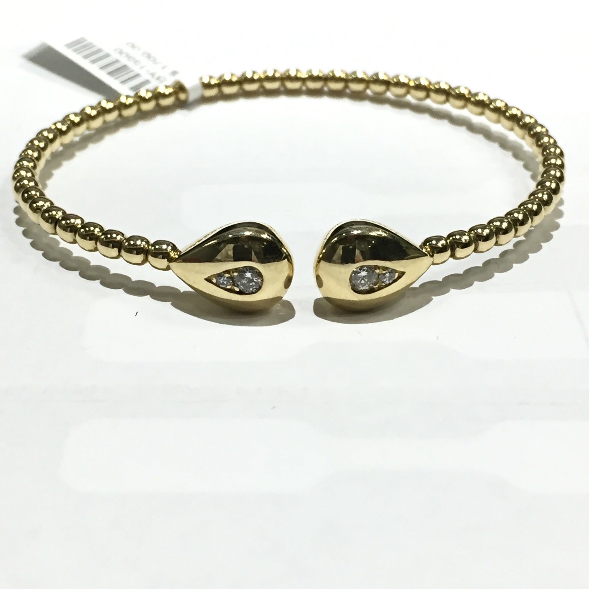 14K yellow gold diamond bangle with pave pear shaped diamond accents with .21 carats of diamonds.