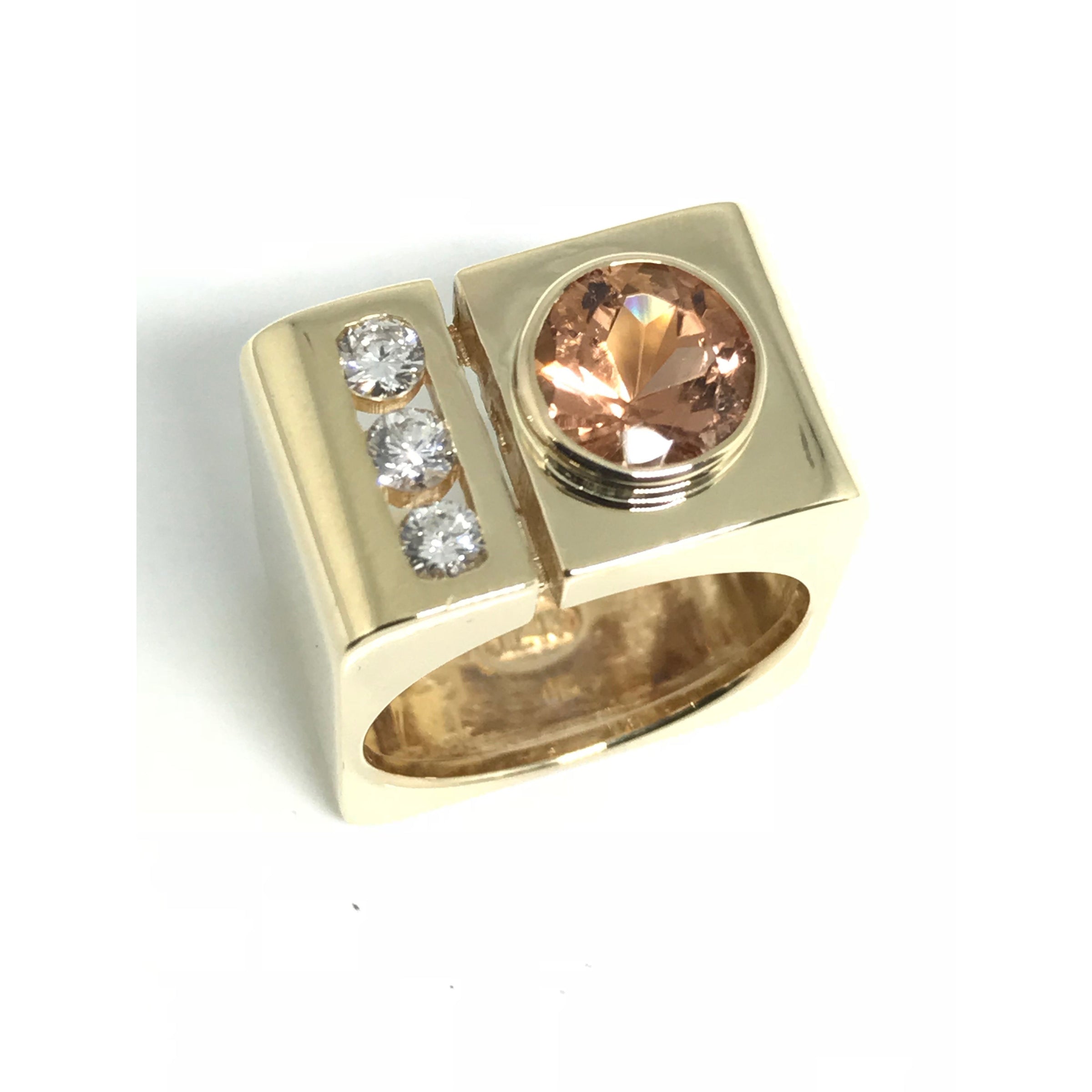14K YELLOW GOLD RETRO PEACH TOURMALINE AND DIAMOND RING