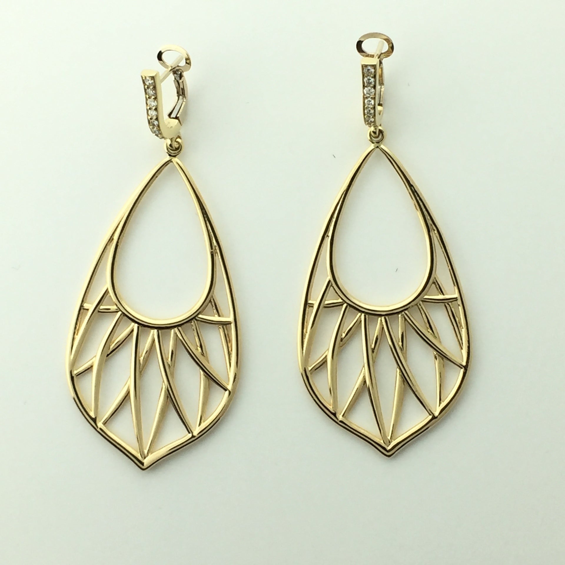 One pair of 14K yellow gold drop eaarings with 0.28 carats of diamonds on a French clip.