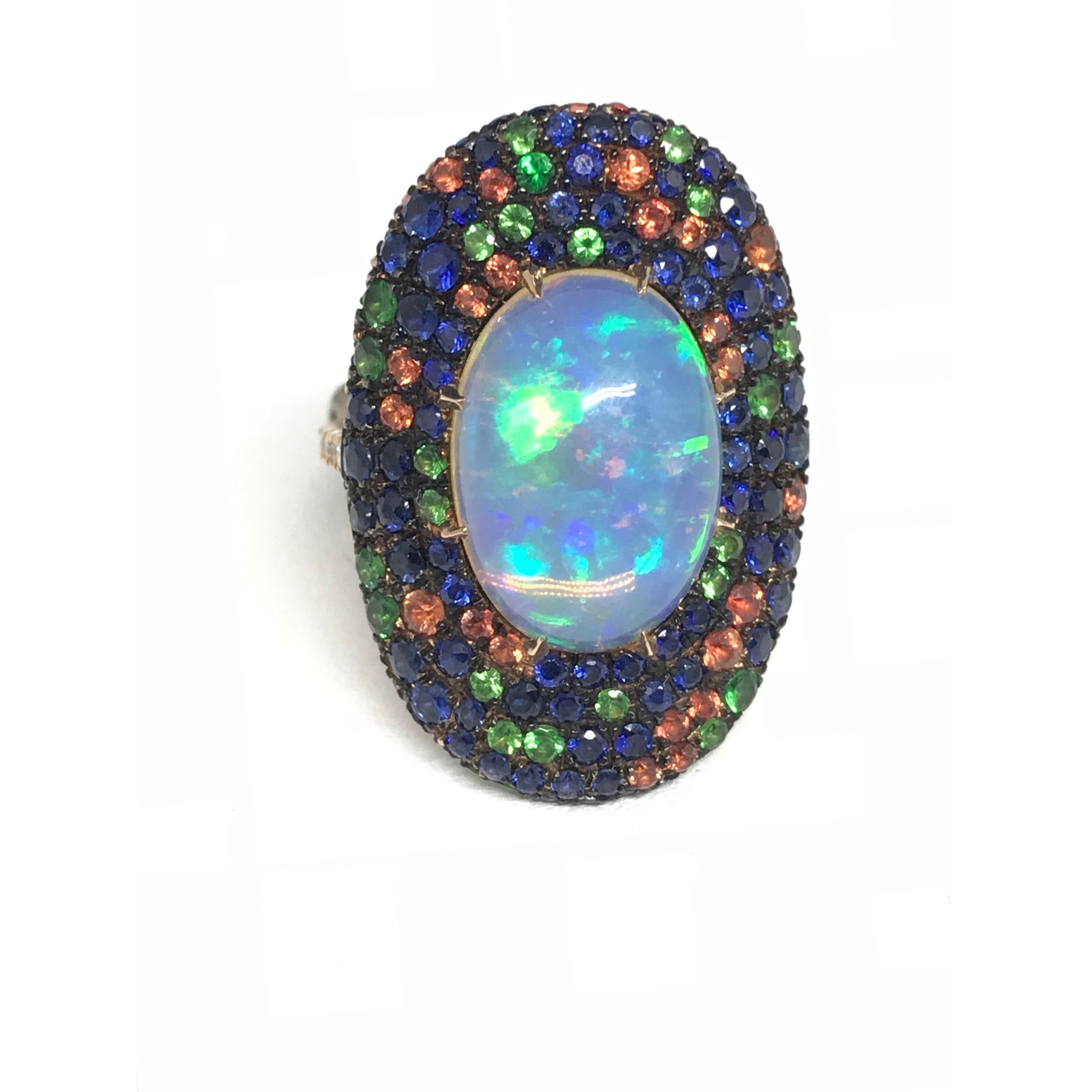 18K ROSE GOLD 4.64 CT OPAL COLORED SAPPHIRES DIAMOND RING