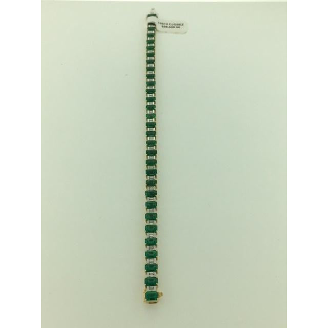 18K WHITE AND YELLOW GOLD EMERALD 8.88 CT TW AND DIAMOND 1.61 CT TW LINE BRACELE