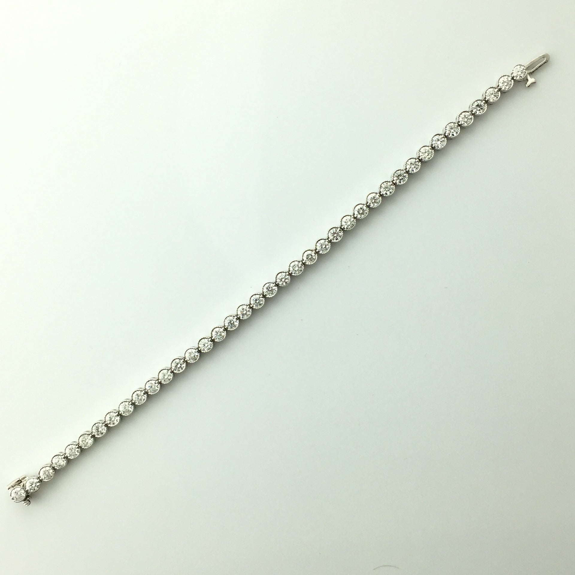 18K white gold diamond straight line bracelet consisting of thirty-nine brilliant cut diamonds with a combined total weight of 6.00 carats.
