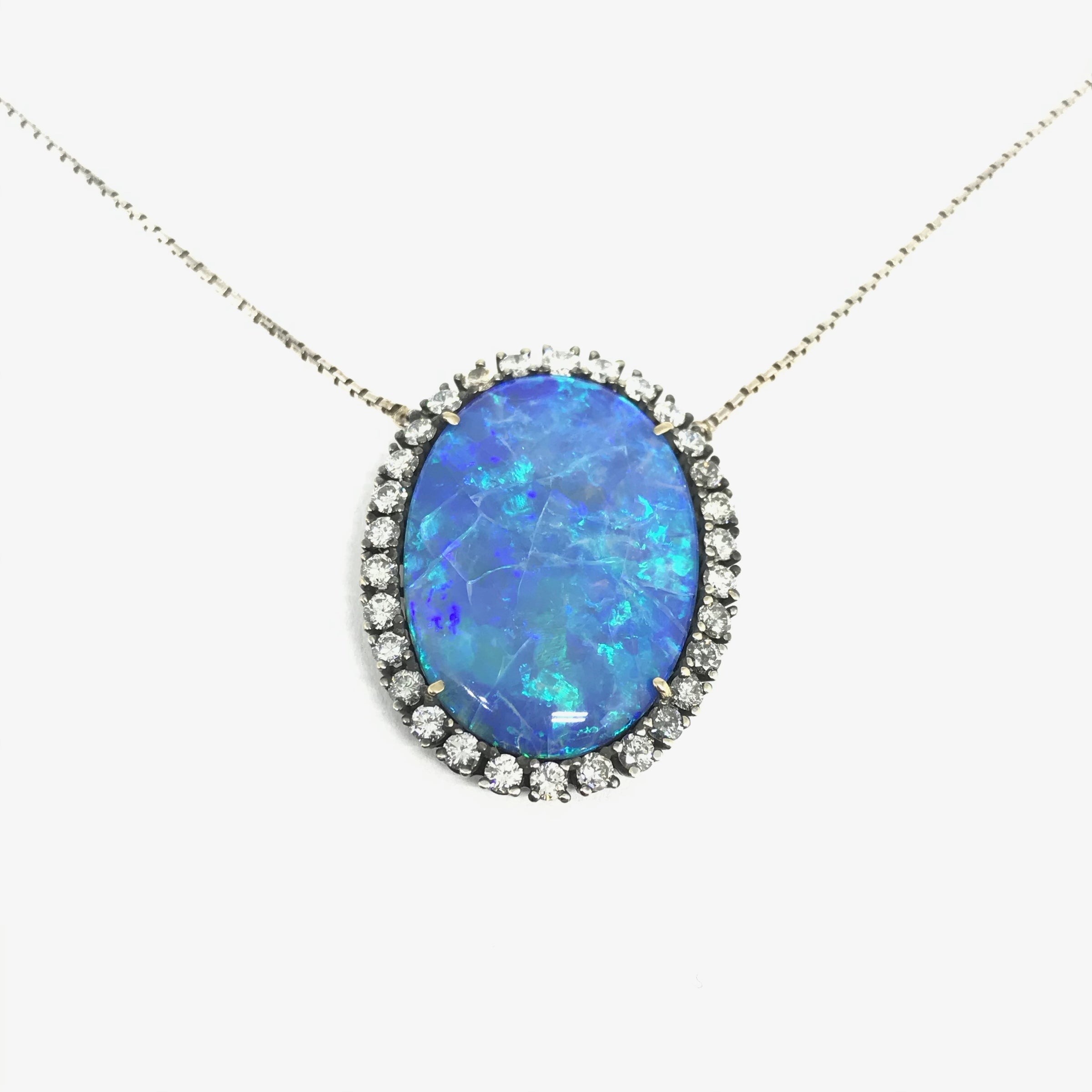 18K WHITE GOLD VINTAGE OPAL - DIAMONDS 2 CT TW NECKLACE