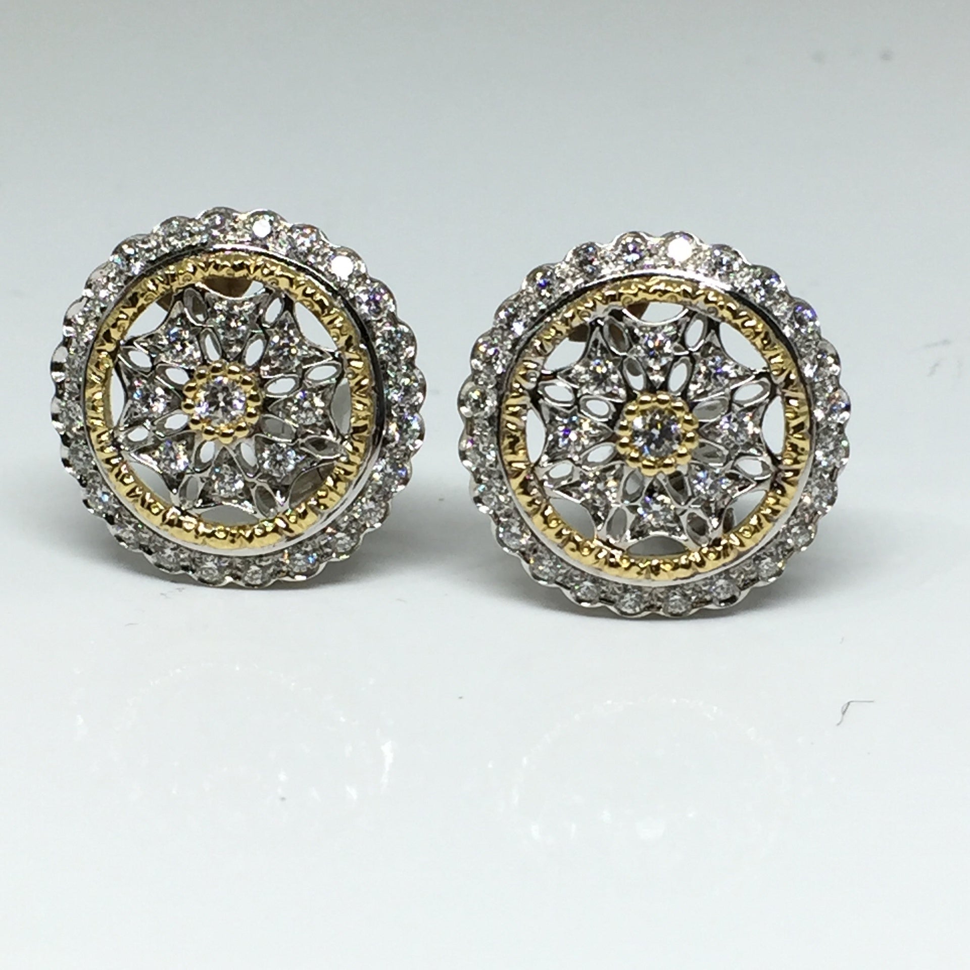 18K W&Y DIAMOND BUCELLATTI STYLE EARRINGS