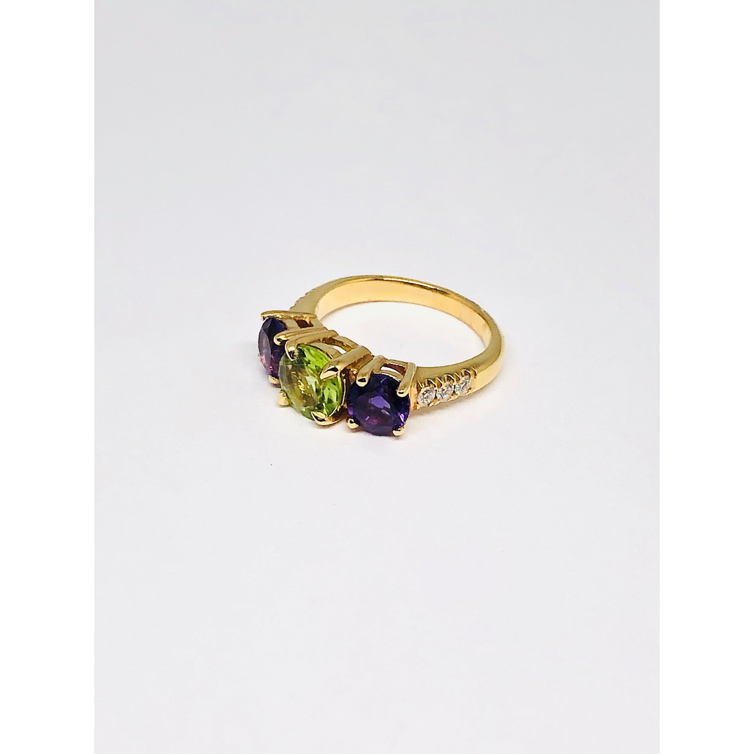 18K YELLOW GOLD AMETHYST PERIDOT DIAMOND RING