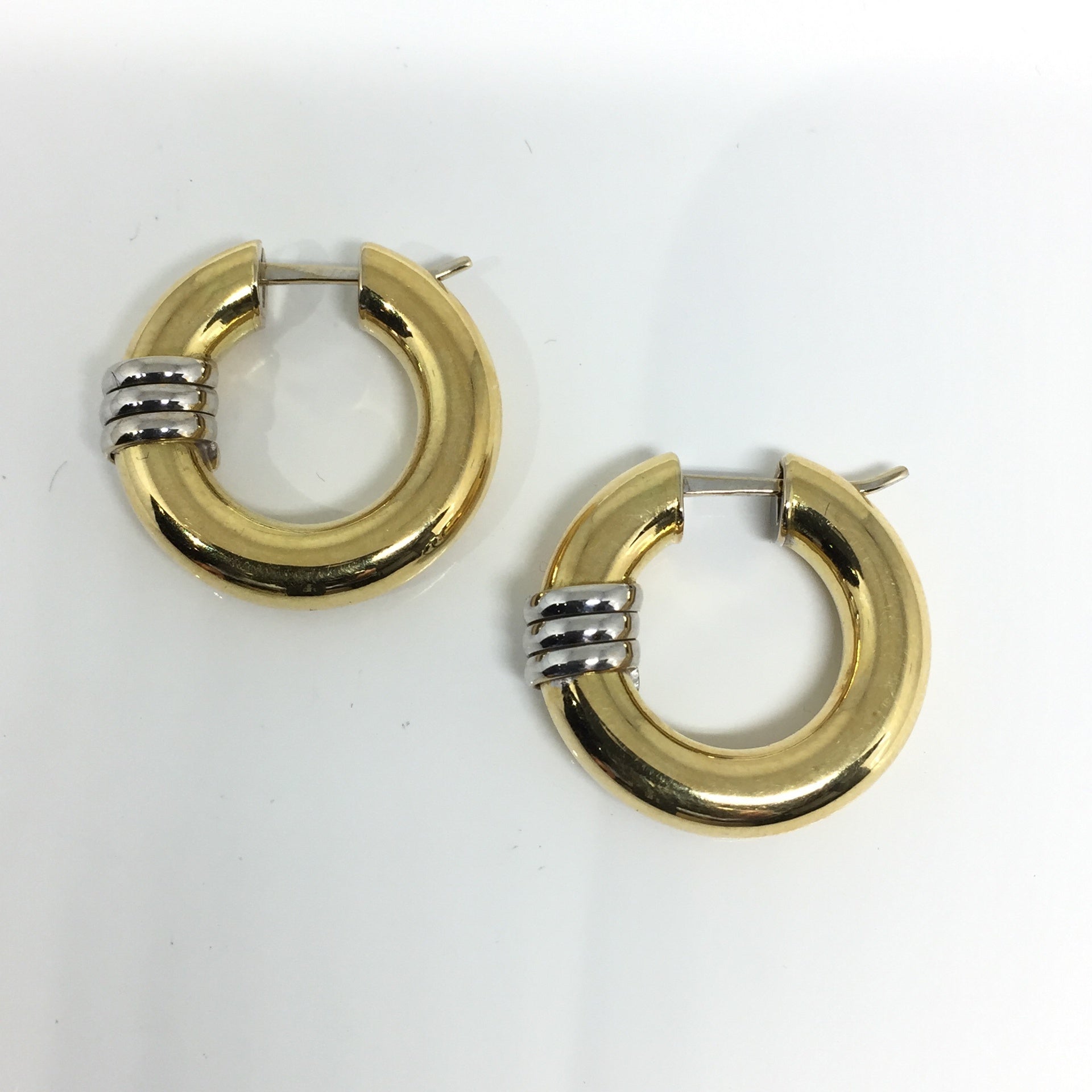 18K YELLOW GOLD HOOPS WITH 3 WHITE GOLD RINGS
