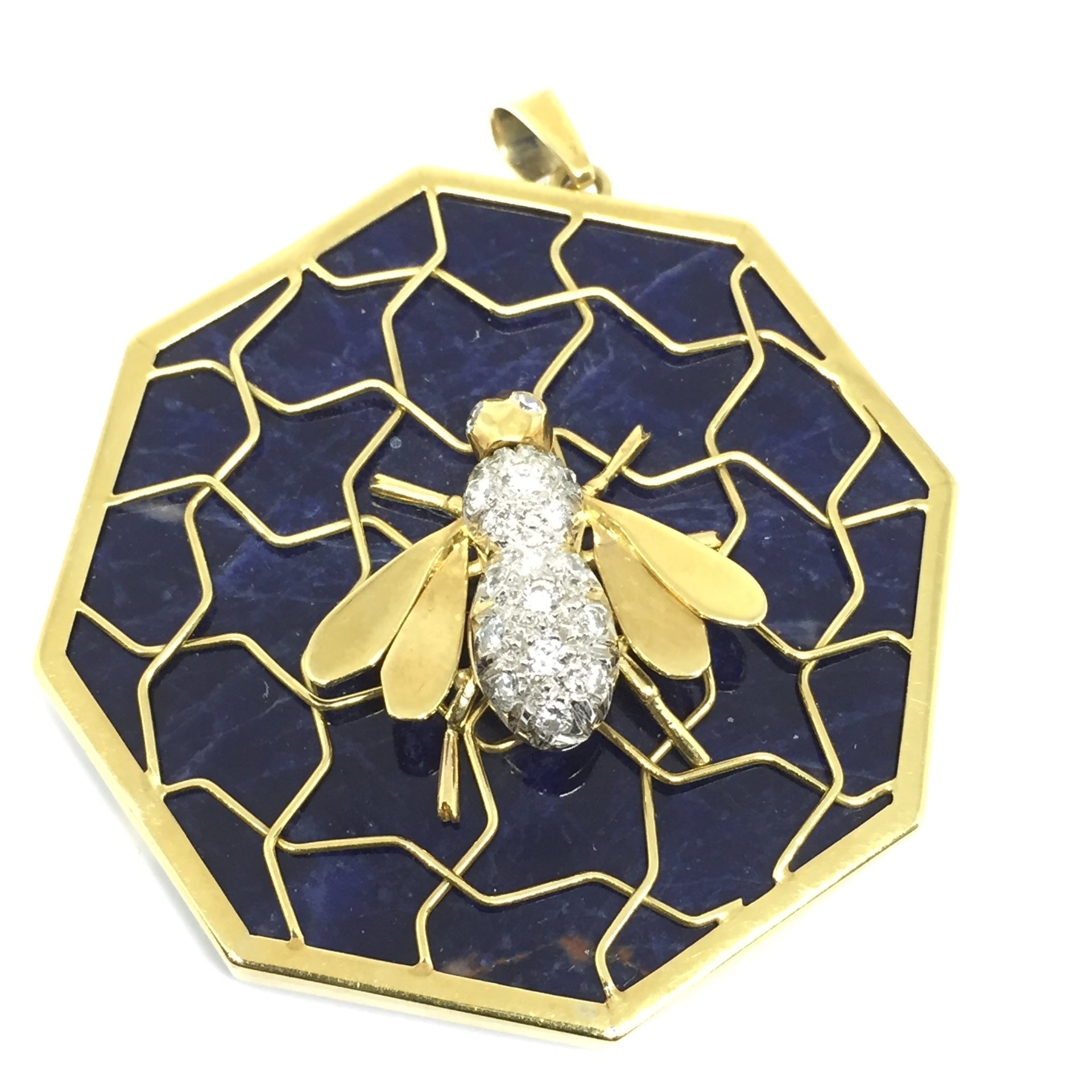18K YELLOW GOLD SODALITE AND DIAMOND PENDANT