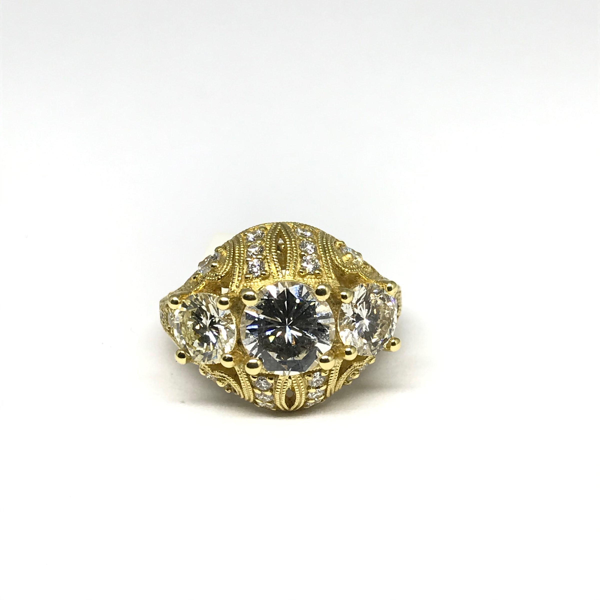 18K YELLOW GOLD VICTORIAN STYLE DIAMOND 3.02 CT TW RING