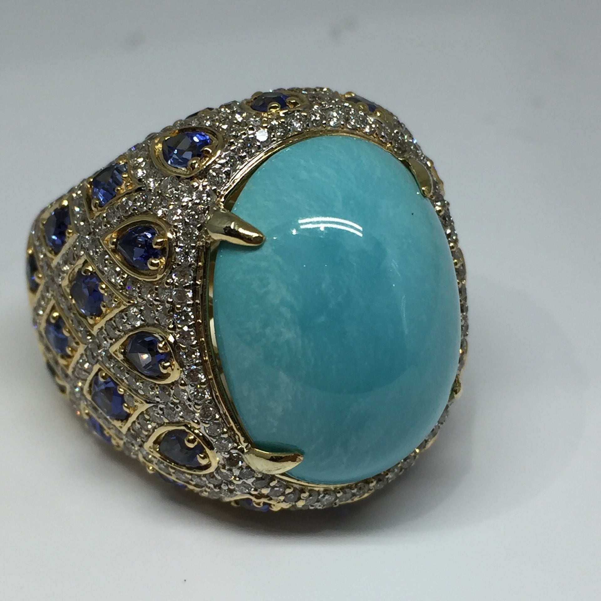 18K YG PERSIAN TURQUOISE AND DIAMOND RING