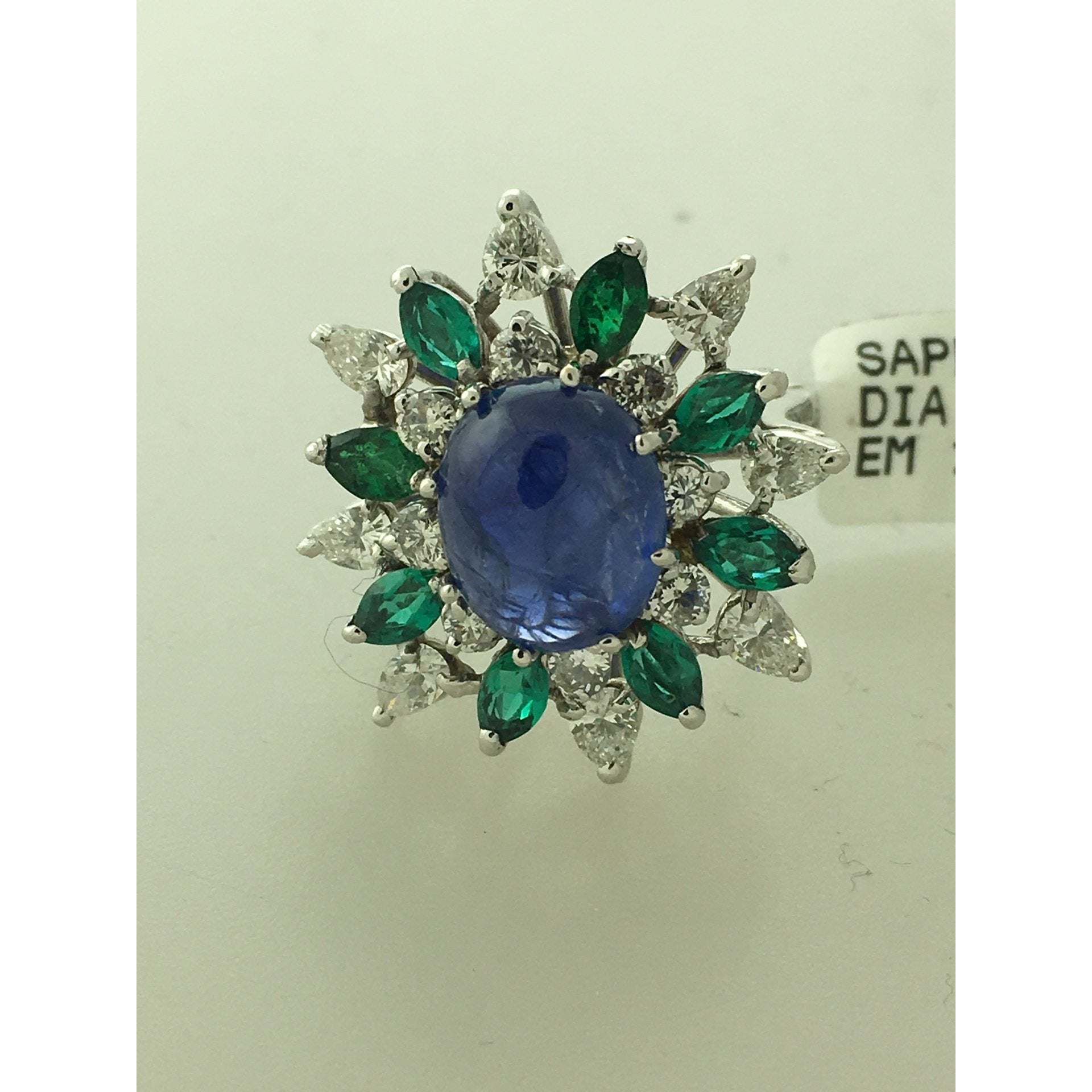 5.76CT CAB SAPPHIRE DIAMOND & EMERALD RING
