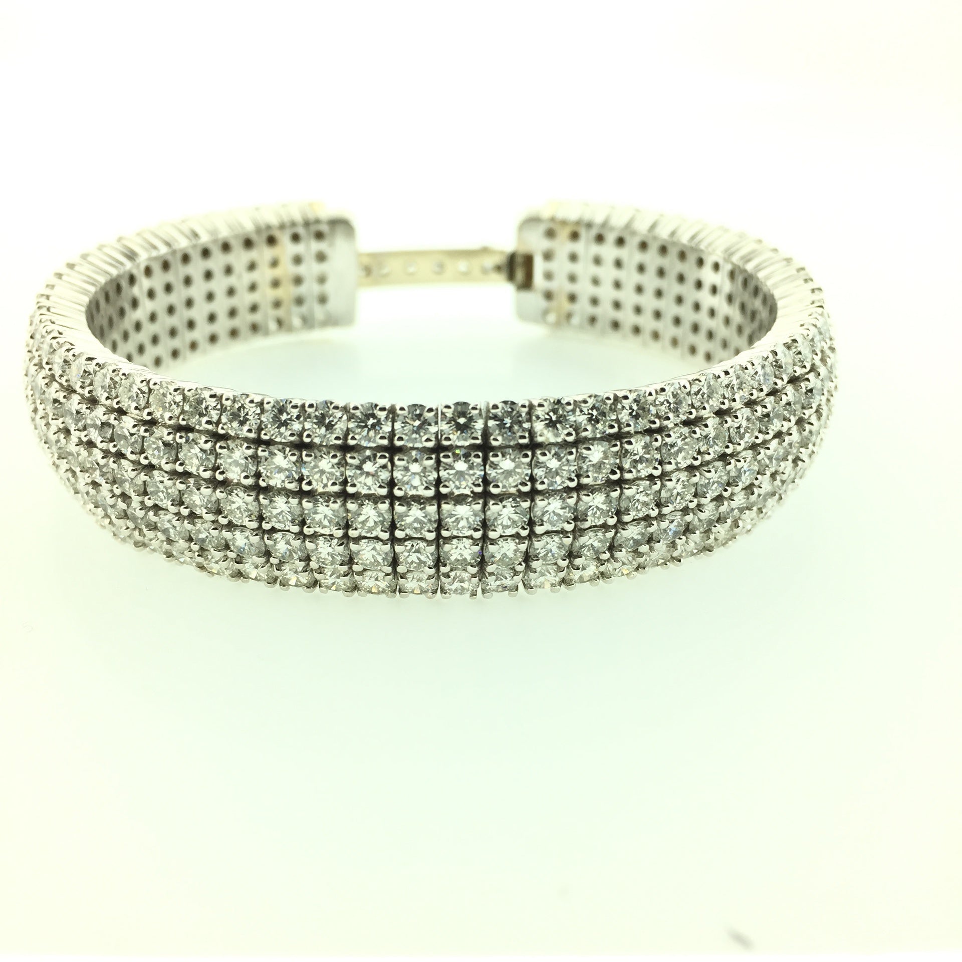 Pave 5 row diamond bangle in 18k white gold with approximately 10.80cts