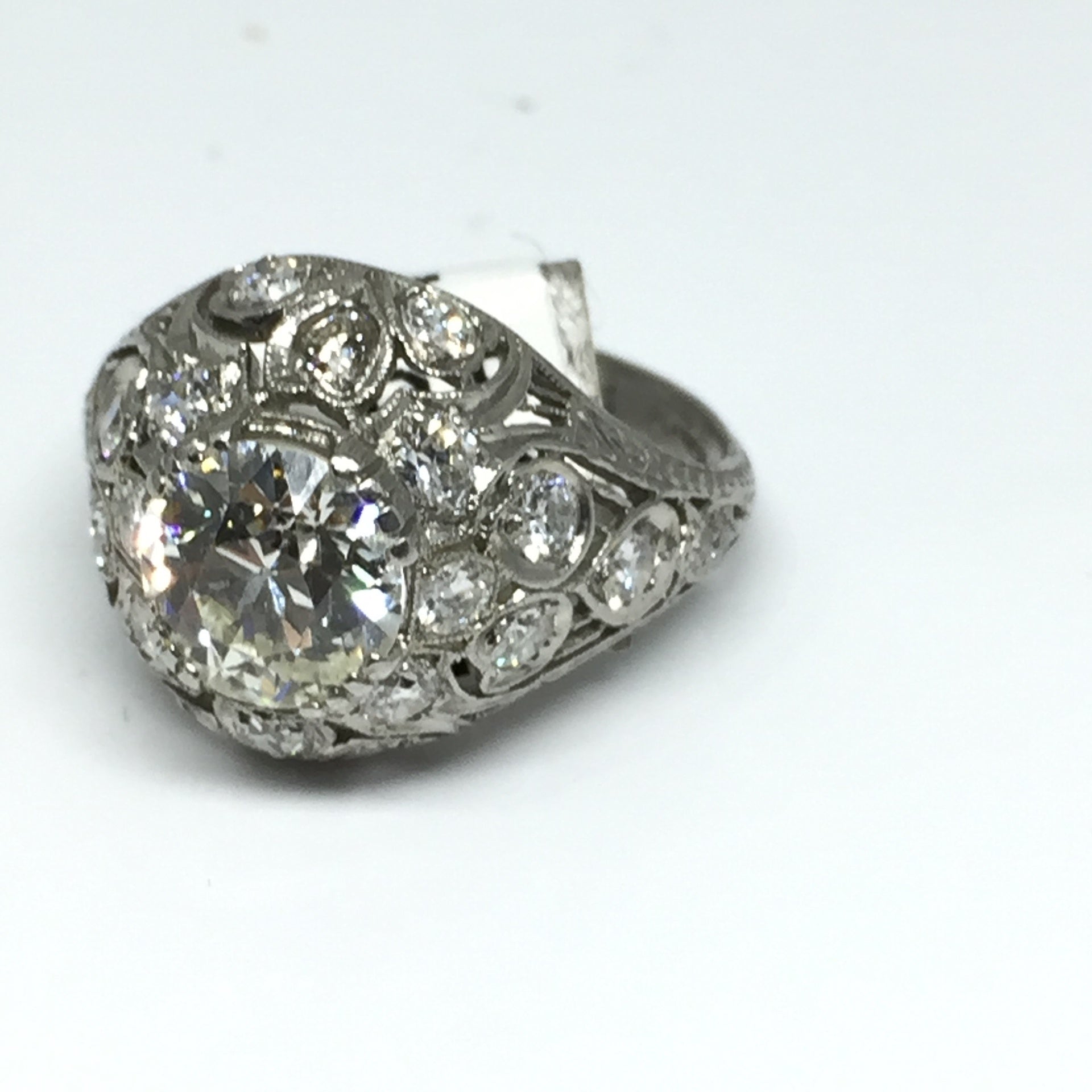 ART DECO PLATINUM AND DIAMOND DOME SHAPE RING CENTER DIAMOND 1.85 CT