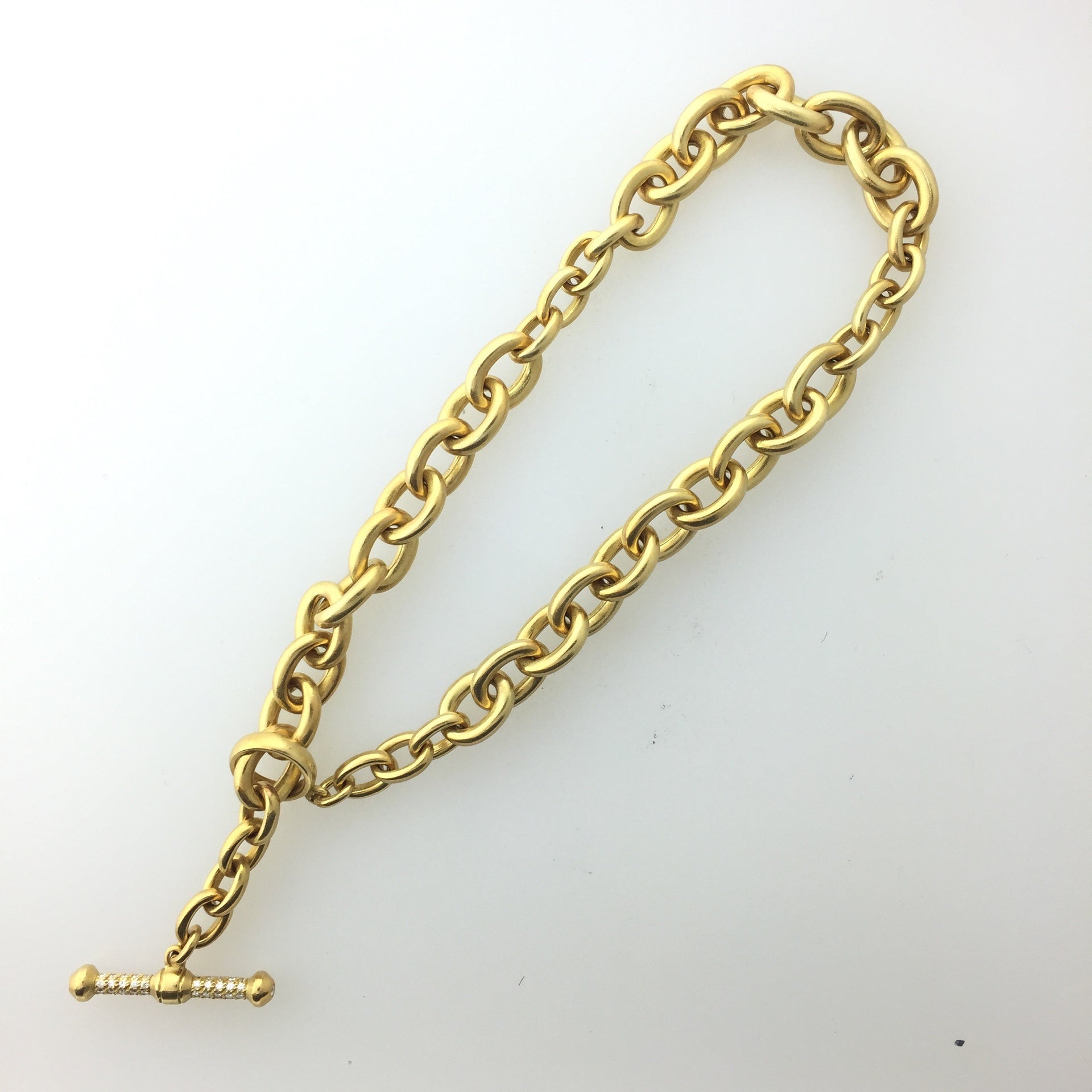 BARRY KIESELSTEIN-CORD COUNTRY LINK NECKLACE WITH DIAMOND TOGGLE IN MATTE FINISH 18K GREEN GOLD. 1.00CT OF D FLAWLESS DIAMONDS.