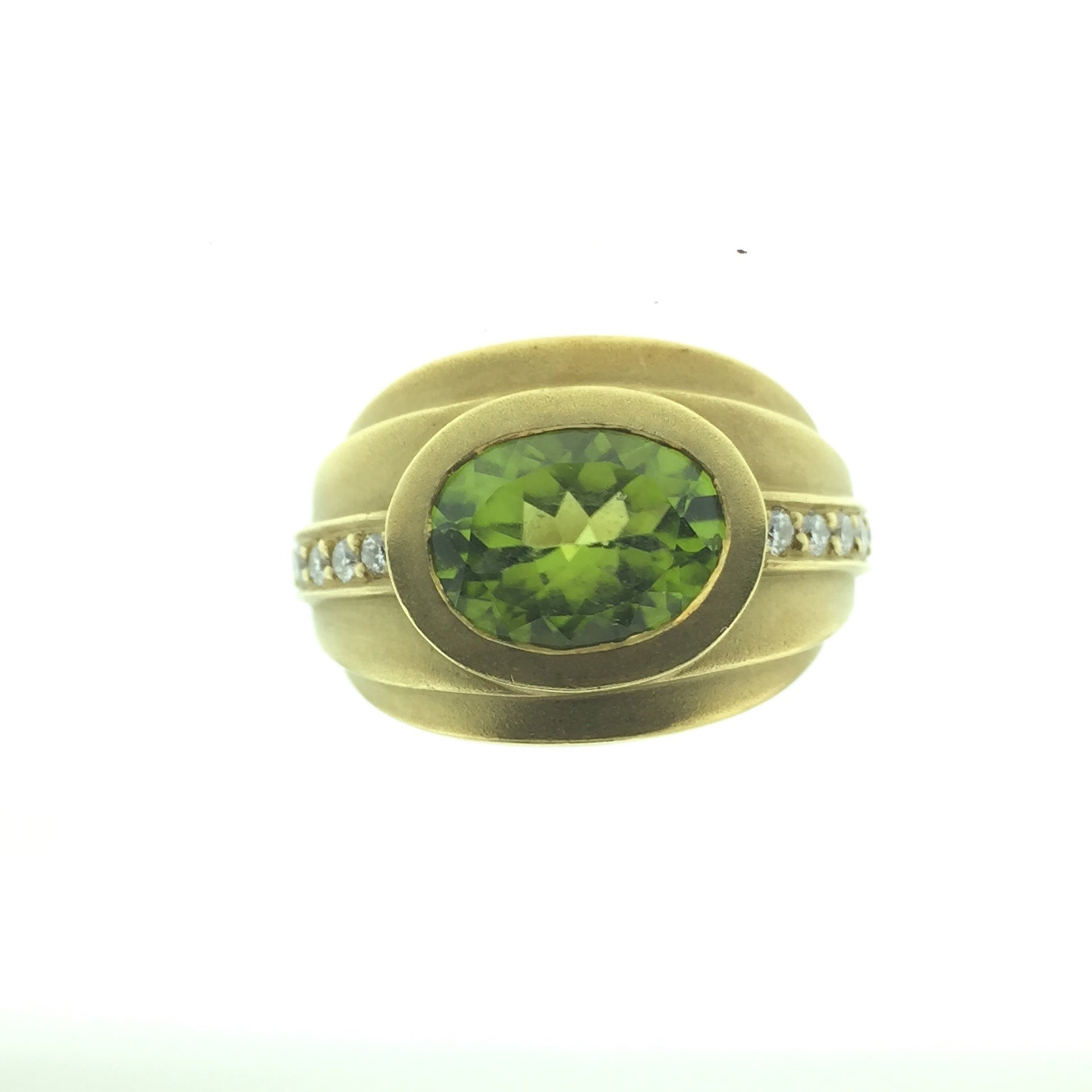 PERIDOT AND DIAMOND RING BY BARRY KIESELSTEIN-CORD IN MATTE FINISH 18K GREEN GOLD.