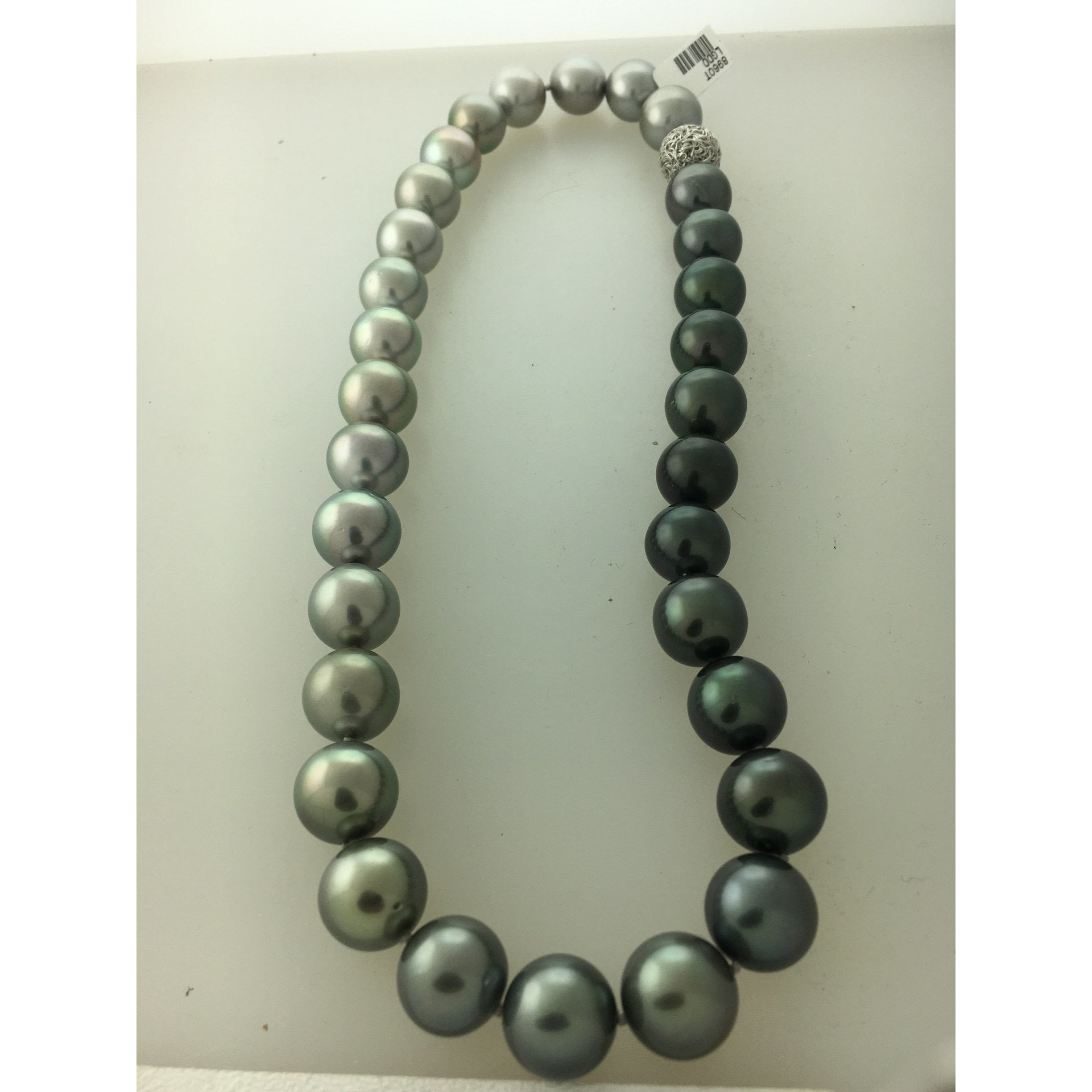 BLACK TO GREY TAHITIAN PEARL GOLD CLASP NECKLACE