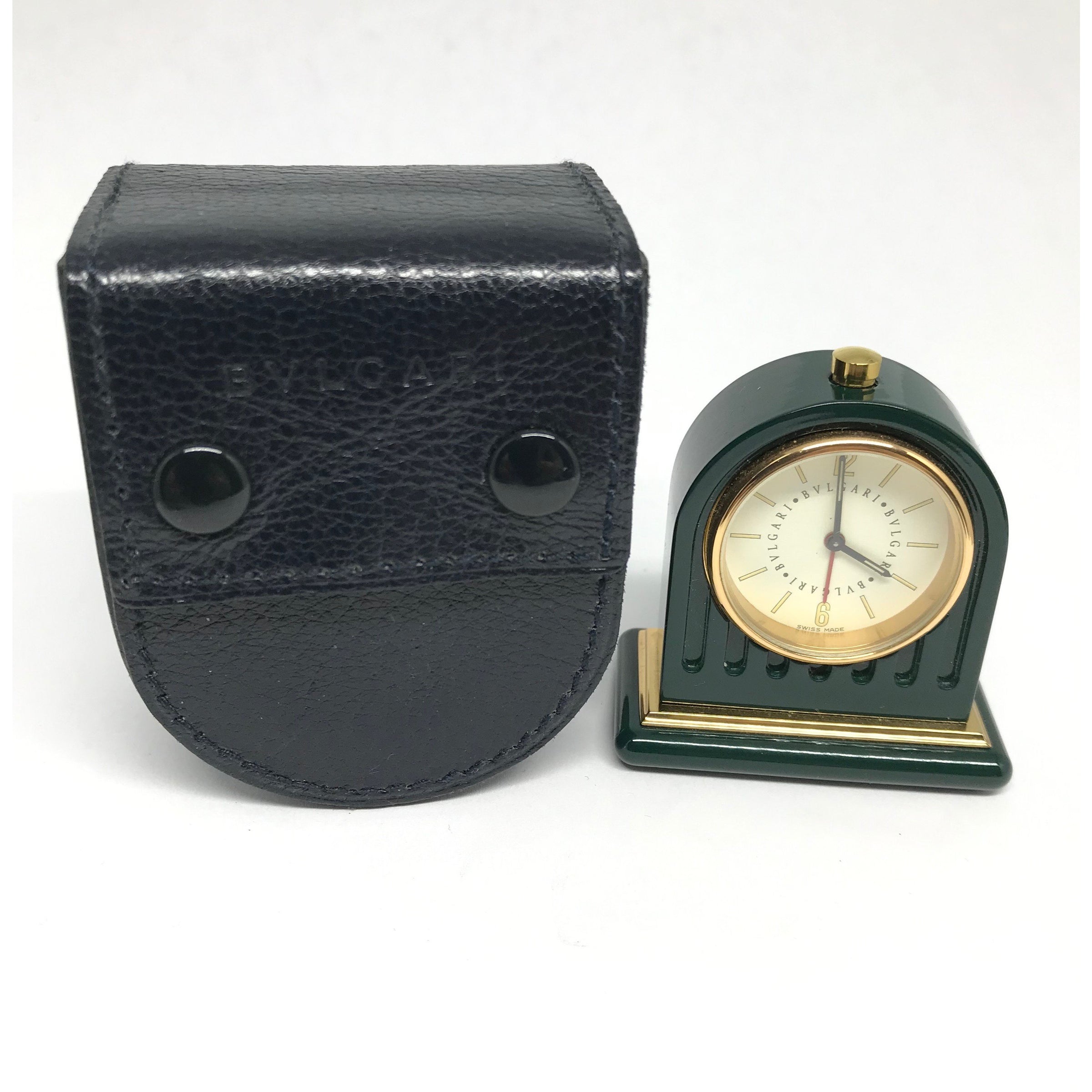 BULGARI GREEN ENAMEL CLOCK WITH ORIGINAL BOX