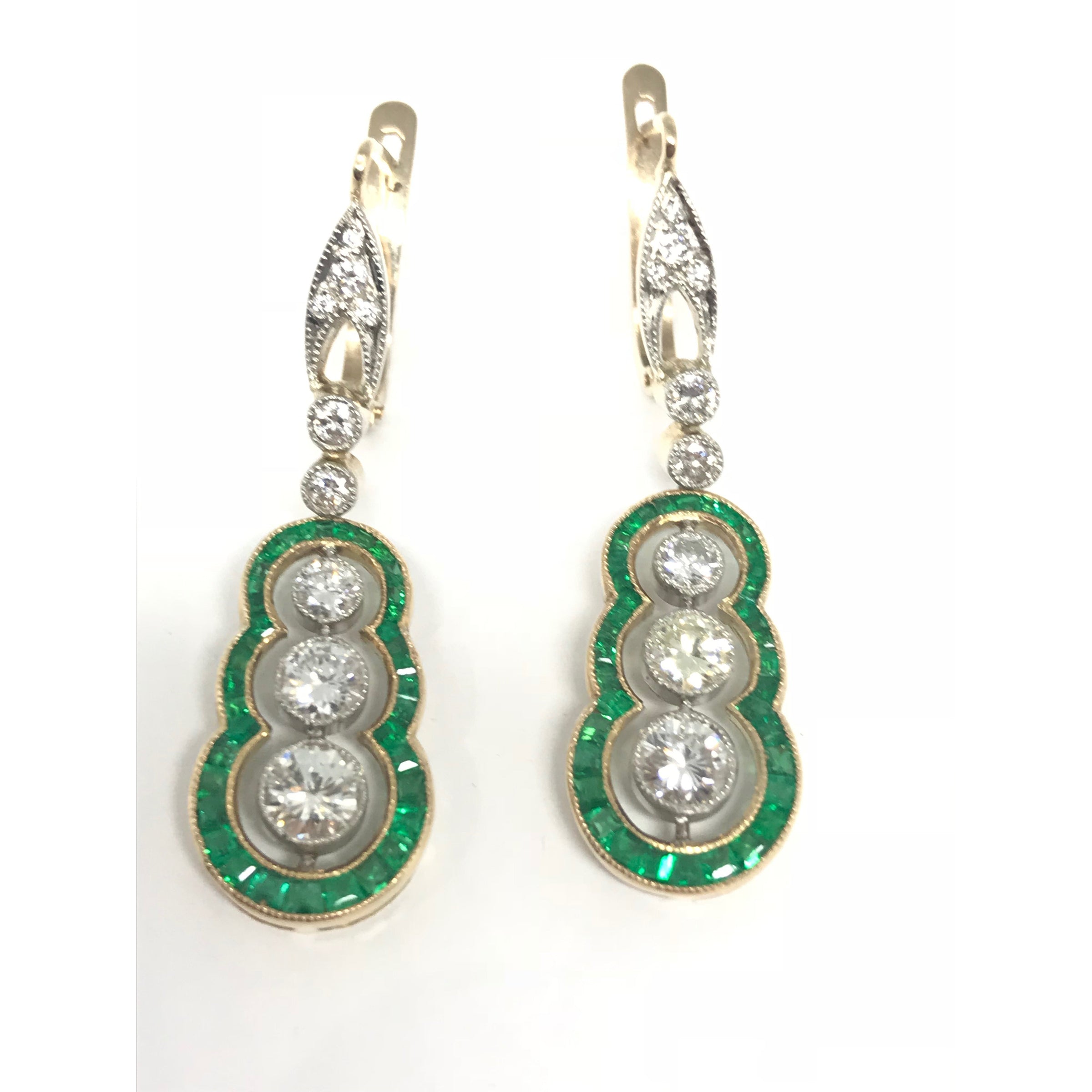 DECO STYLE EMERALD AND DIAMOND TRIPLE CIRCLE EARRINGS