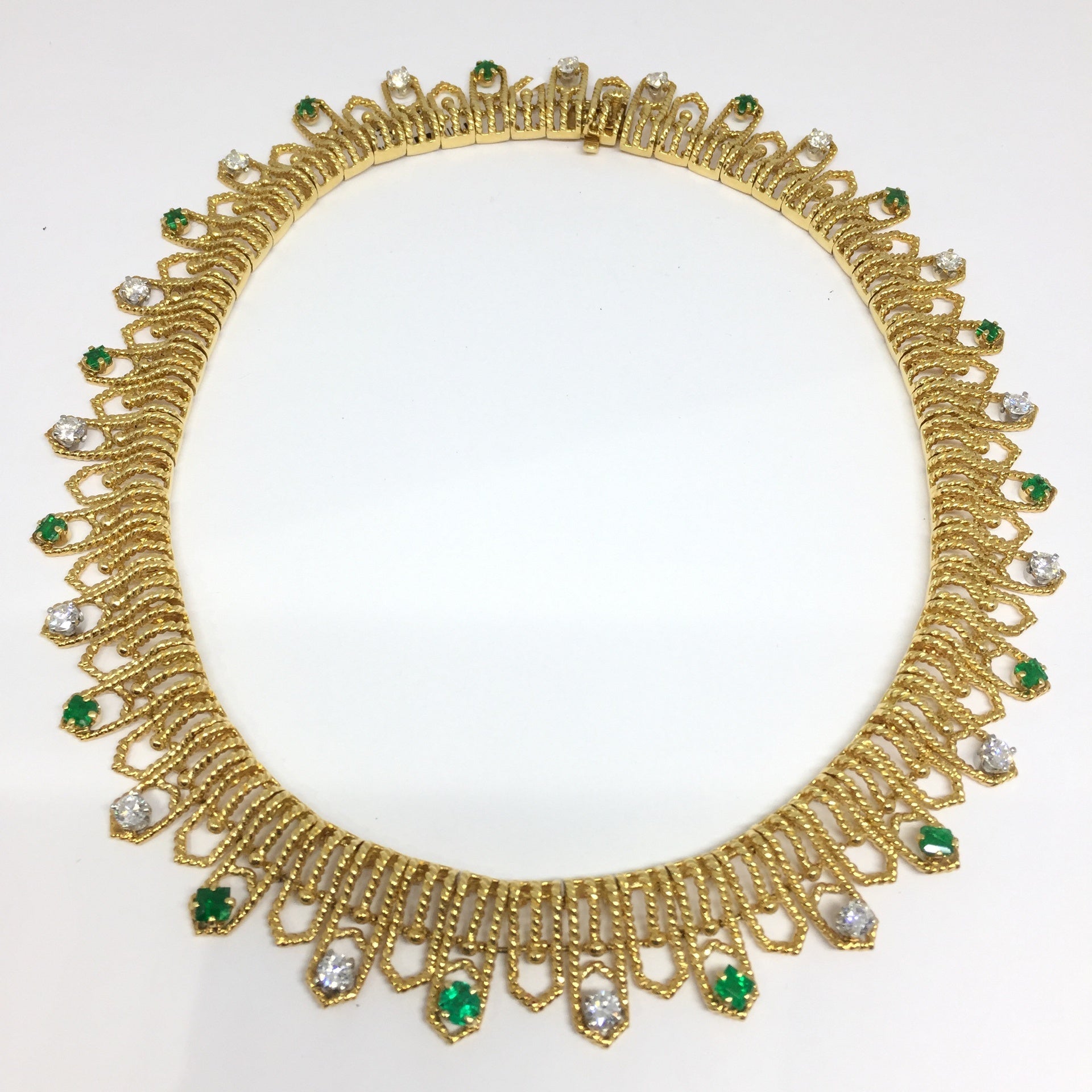 I8K YG DIAMOND AND EMERALD NECKLACE