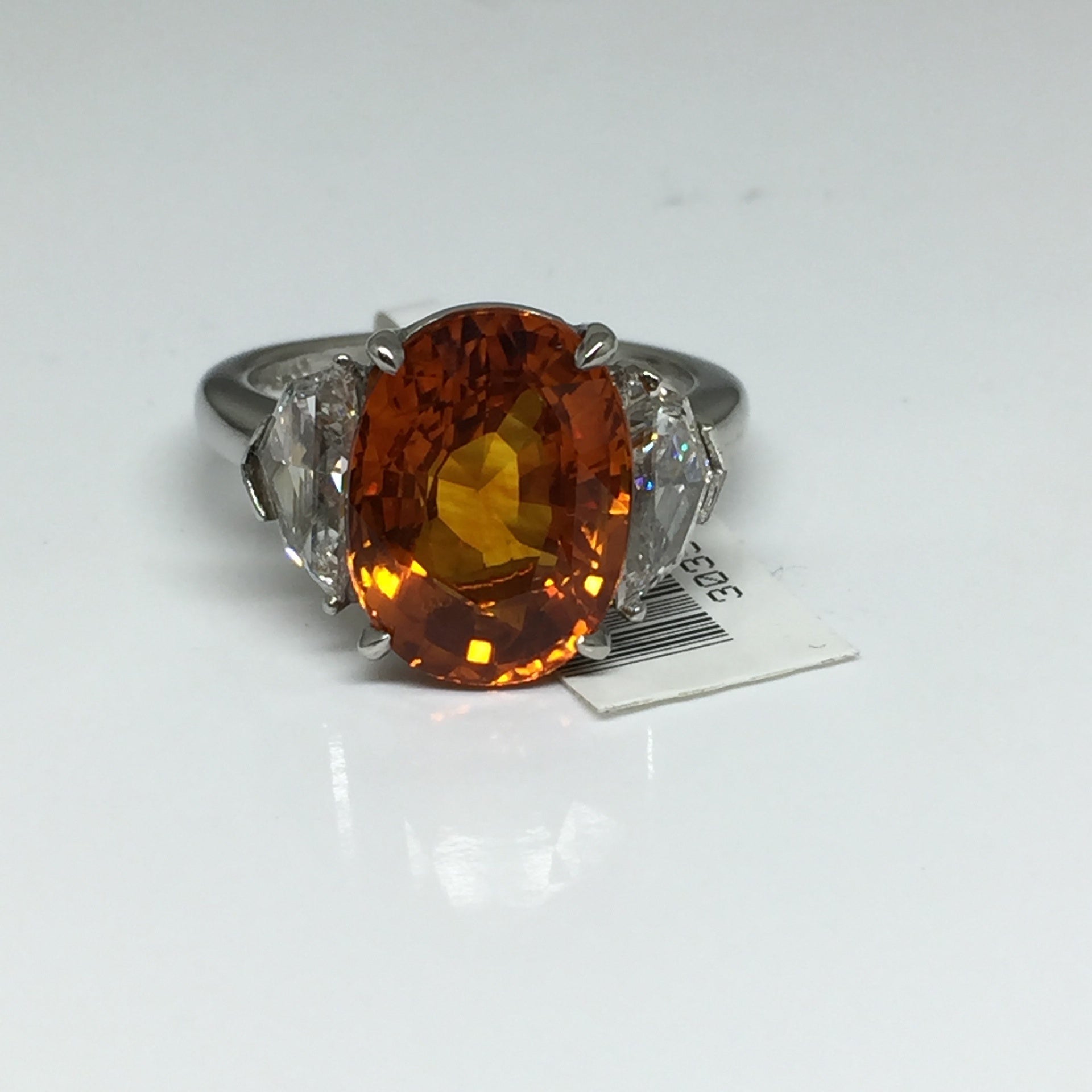 PLATINUM ORANGE SAPPHIRE 7.47 CT DIAMOND 1.01 CT RING