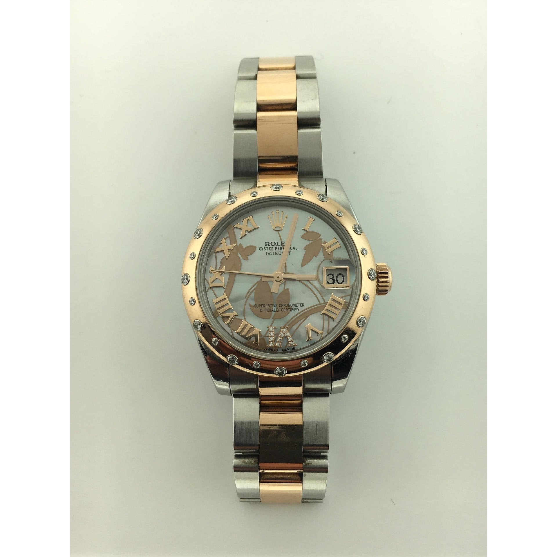 ROLEX DATEJUST ROSE GOLD/SS DIA FLOWER DIAL